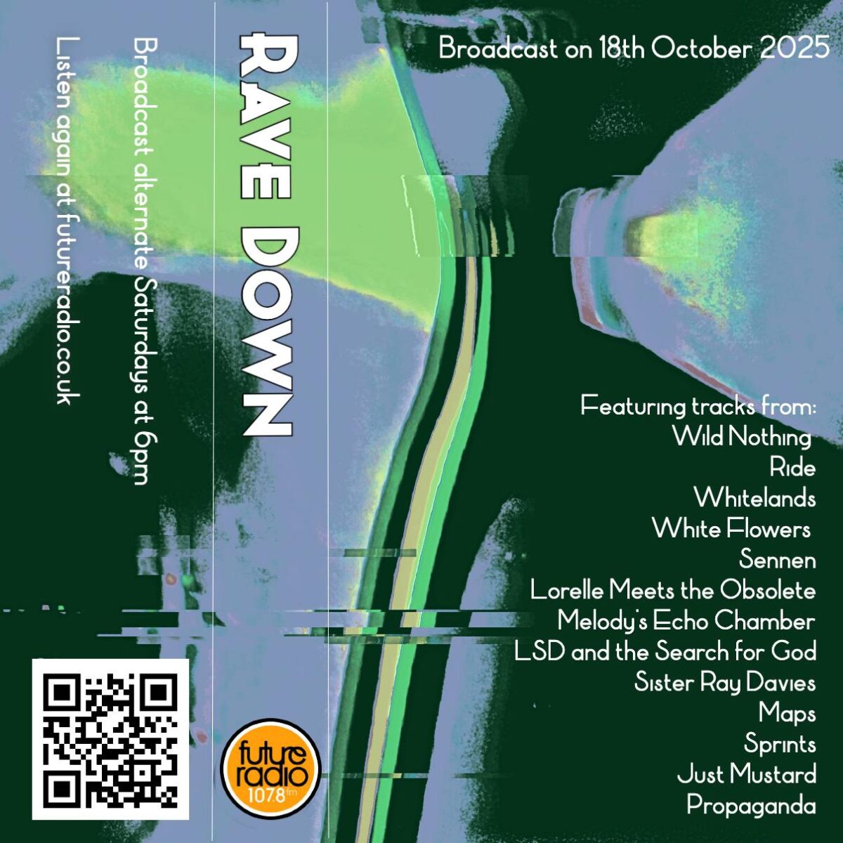 A week with plenty of new releases and some anniversaries. This hour features tracks from Wild Nothing, Ride, Whitelands, White Flowers, Sennen, Lorelle Meets the Obsolete, Melody’s Echo Chamber, LSD and the Search for God, Sister Ray Davies, Maps, Sprints, Just Mustard and Propaganda.